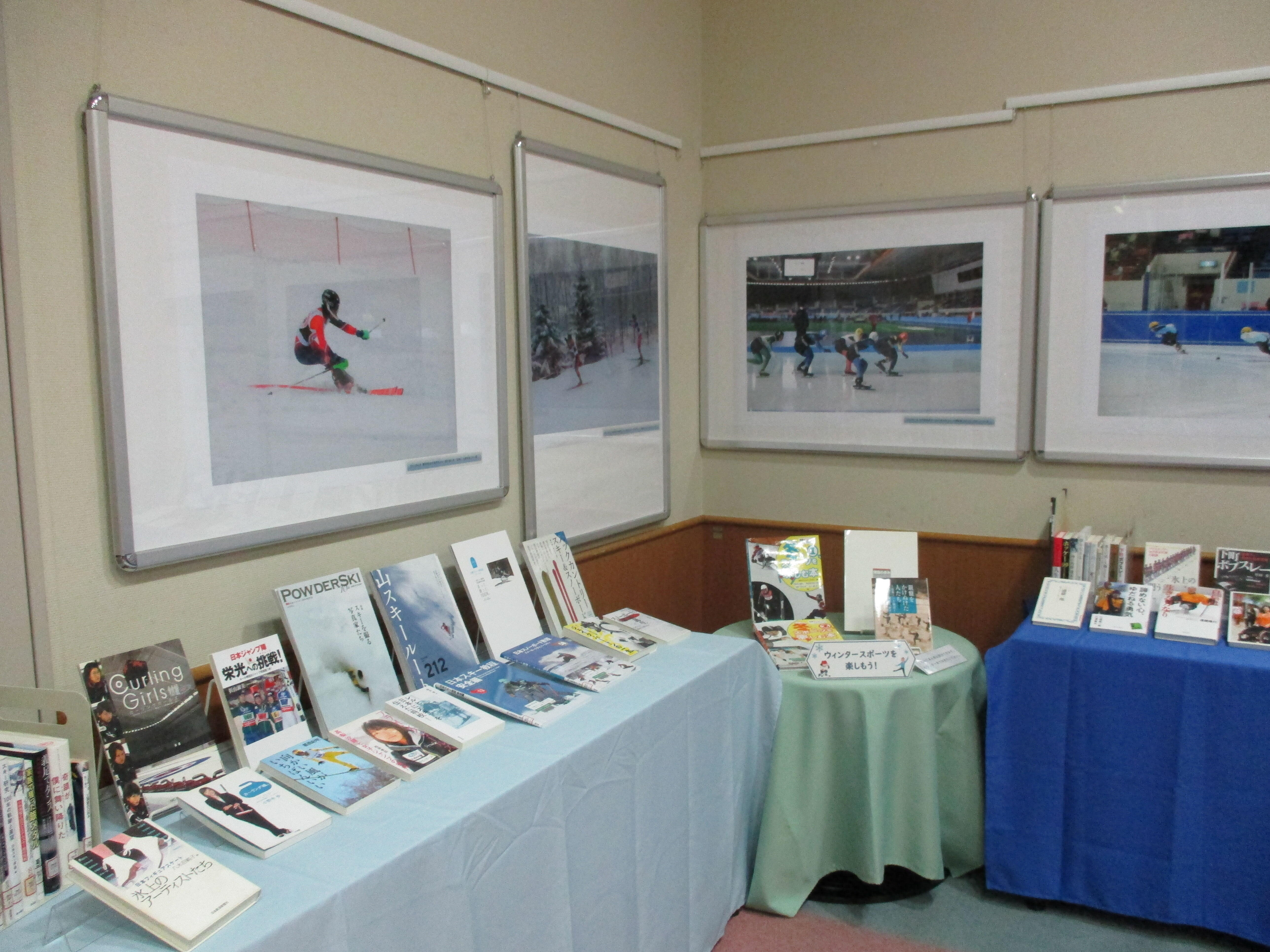 内容:国スポ種目・コルティナ冬季五輪・国スポ開催地・冬場の体力づくりに関する本の展示、国スポ・国スポ開催地のパンフレットの展示、冬季種目の写真パネル掲示を行います。