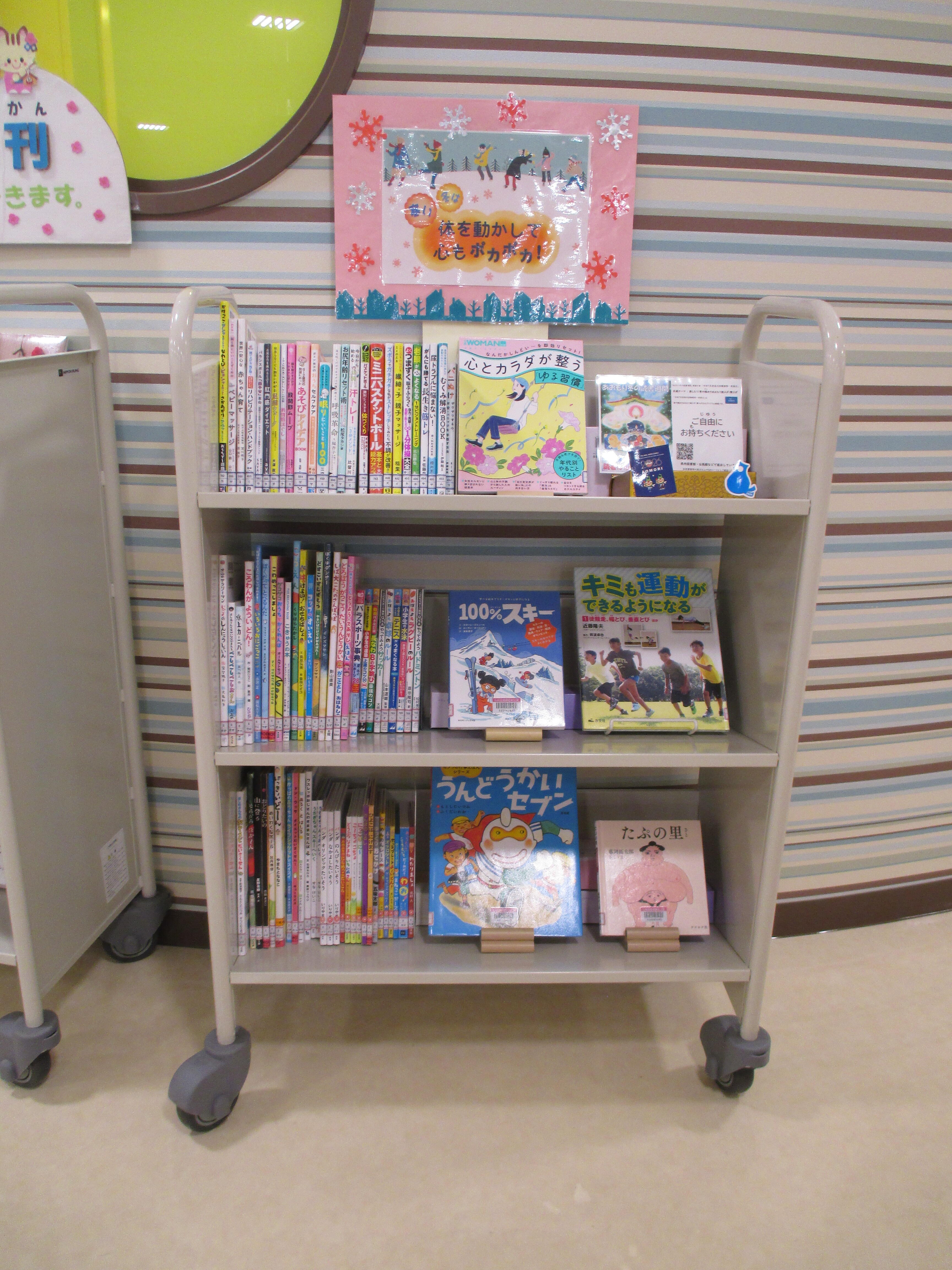 内容:スポーツ小説やスポーツ選手の書いた図書を中心に、冬の期間、室内でできるストレッチ本などの展示、貸出をします。