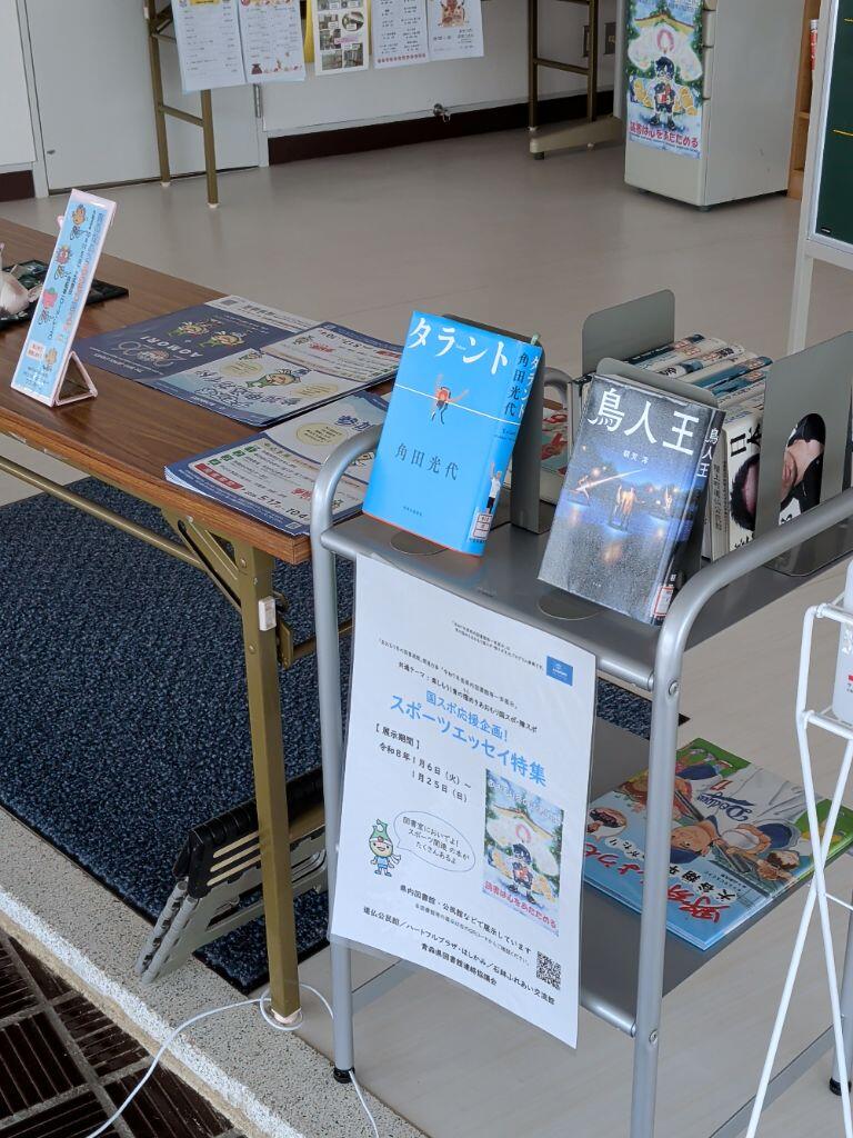 内容:「青の煌めきあおもり国スポ・障スポ」を楽しんでもらえるよう、青森市で開催予定のスポーツ競技を中心に、スポーツのルールやスポーツを題材とした小説などの書籍を展示・貸出します。