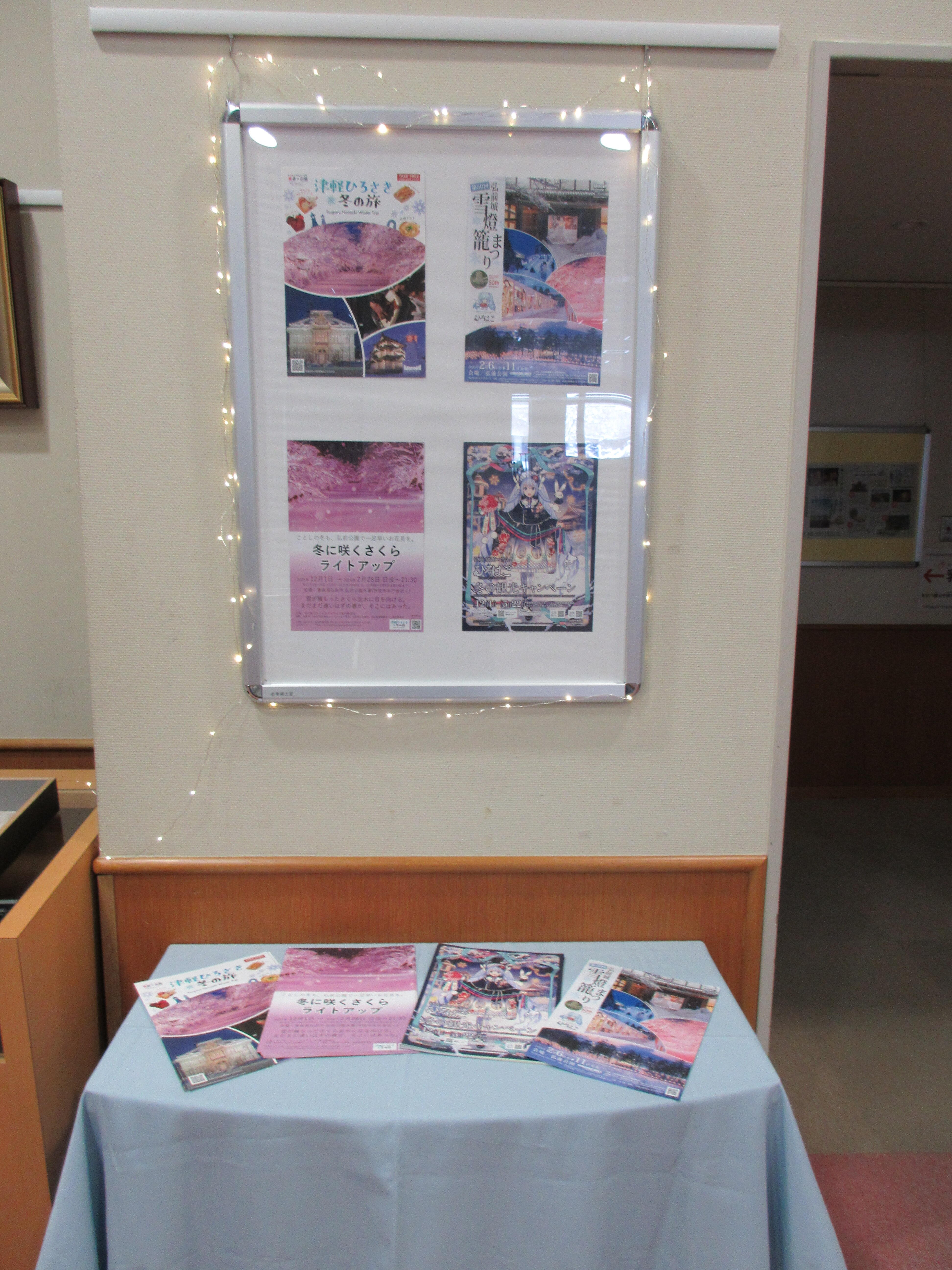 「あおもり雪灯りまつり」、「弘前城雪燈籠まつり」等、のパンフレットも配布します。