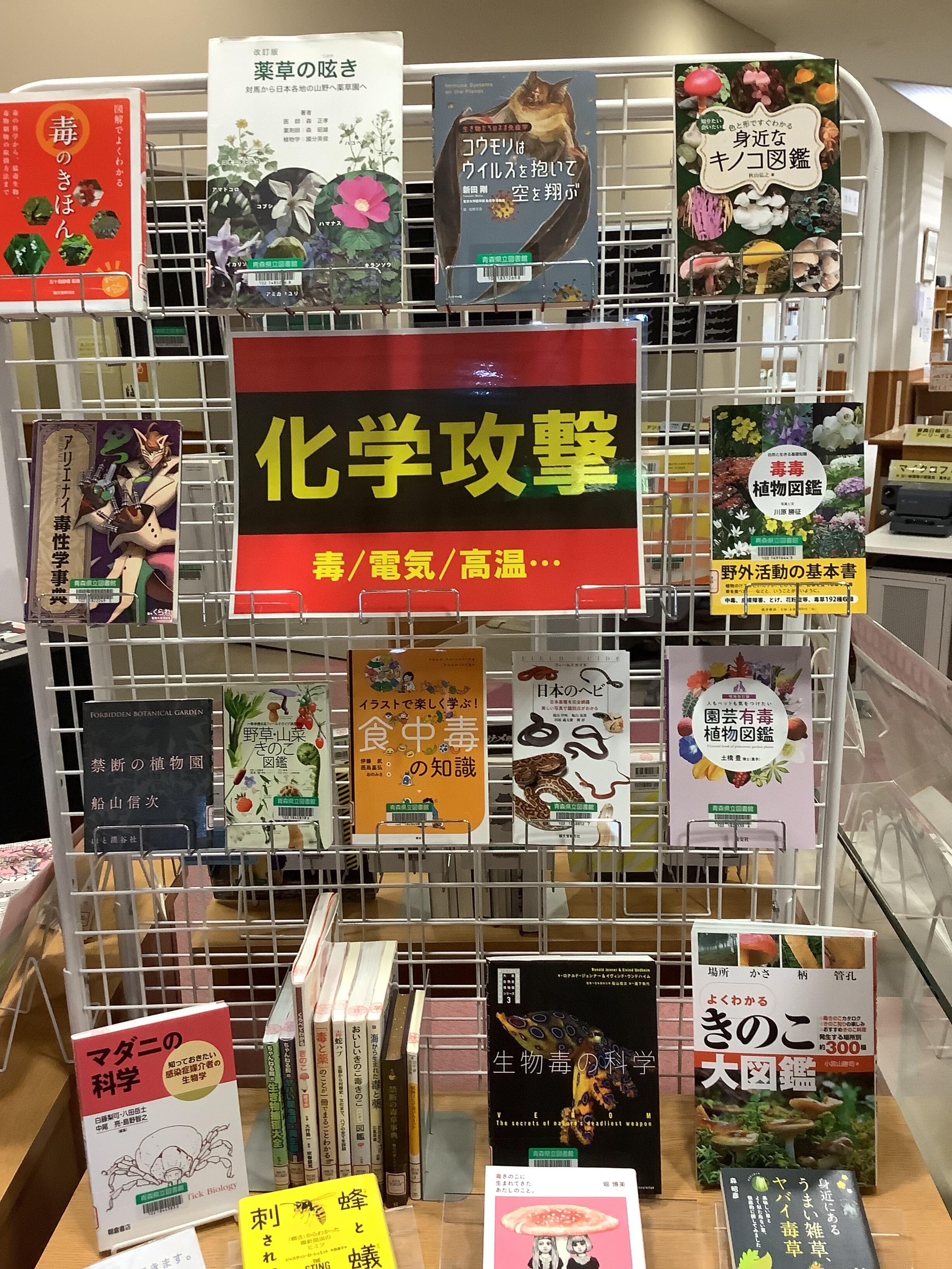 「危険ではない危険生物」たちが本の周りを飾っています。![]()