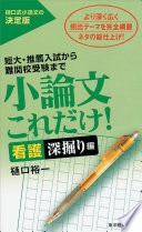 「小論文の神様」が書いた、究極の小論文参考書。看護系の学部・学科・専門学校を志望する学生向けに、看護系小論文の特徴や実際に書くときの心構えから、看護系に狙われる課題とその解説、複数の解答例までをまとめる。