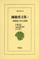 新文化運動、五・四運動の先導者、中国共産党創立者でありながら、不当にその存在意義を貶められてきた陳独秀の主要論説を編訳。1は、1904年〜1921年の思想、文化、言語方面の作品を収録。