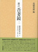 初代将軍・源頼朝から第六代将軍・宗尊親王までの出来事を編年体で記した鎌倉幕府編纂の歴史書「吾妻鏡」。吉川本を底本に、人名注や記事の概要なども示す。2は、文治元年〜文治3年の記事を収録。人名索引付き。