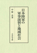 軍隊の維持に不可欠な軍事演習にあたり、陸軍と地域社会はいかなる関係を有したか。日露戦後から昭和戦前期まで、演習地の負担・被害と歓迎や利益追求、演習地に対する陸軍の認識を考察し、両者の円満な関係構築などを描く。