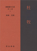 中国の古典詩を代表する詩人の作品を、伝統的な訓読、美しい日本語による明解な現代語訳、理解・鑑賞に役立つ解説により、現代によみがえらせる。詩人編9は、格調と華麗さで唐詩の正統を今に伝える杜牧の詩を取り上げる。