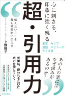 ひとつの引用が、説得力と信頼感を倍増させる! 伝える内容にあった引用の見つけ方、映画書籍ほか諸媒体からの引用の仕方など、伝えたいことを効果的に伝える「引用」の技術を紹介する。「今日から使える名言集」も収録。